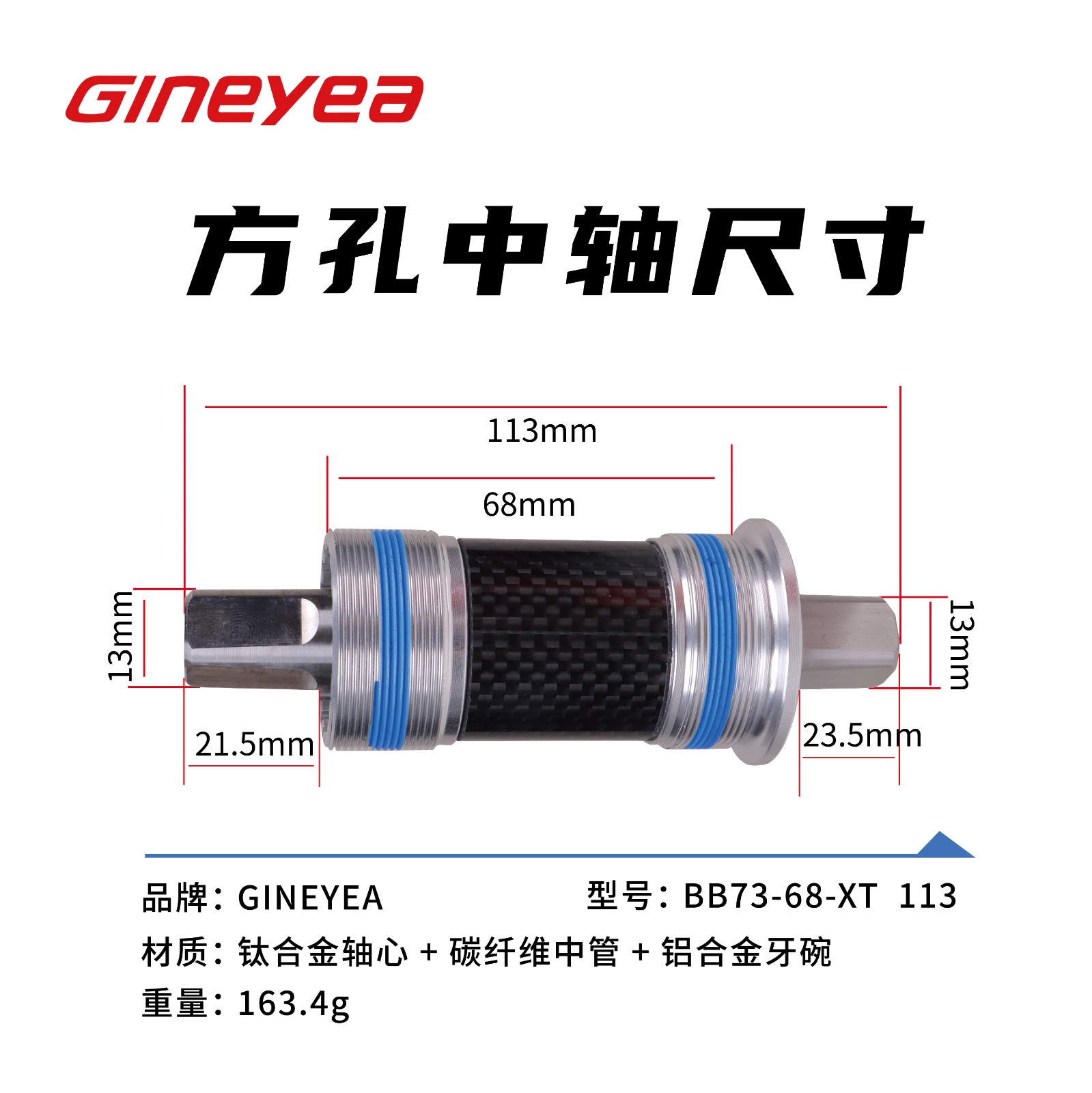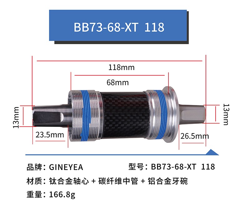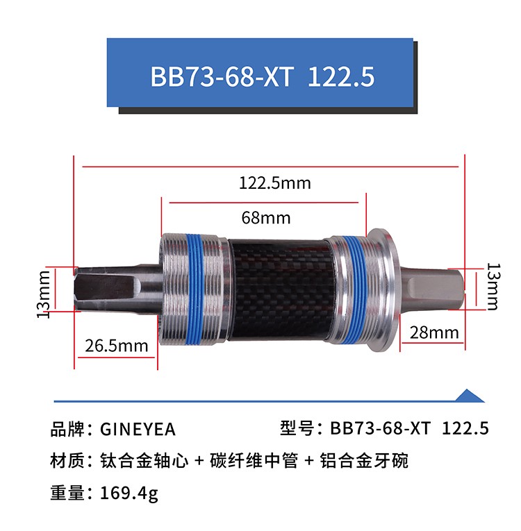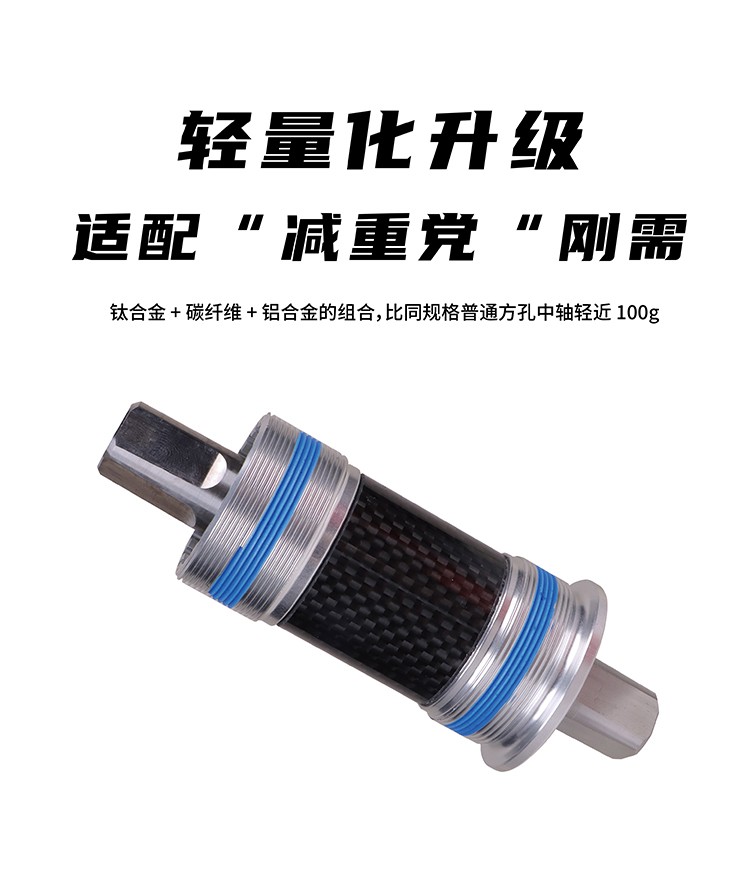 景曄鈦合金方孔中軸山地車改裝陶瓷珠中軸113/118/120/122.5