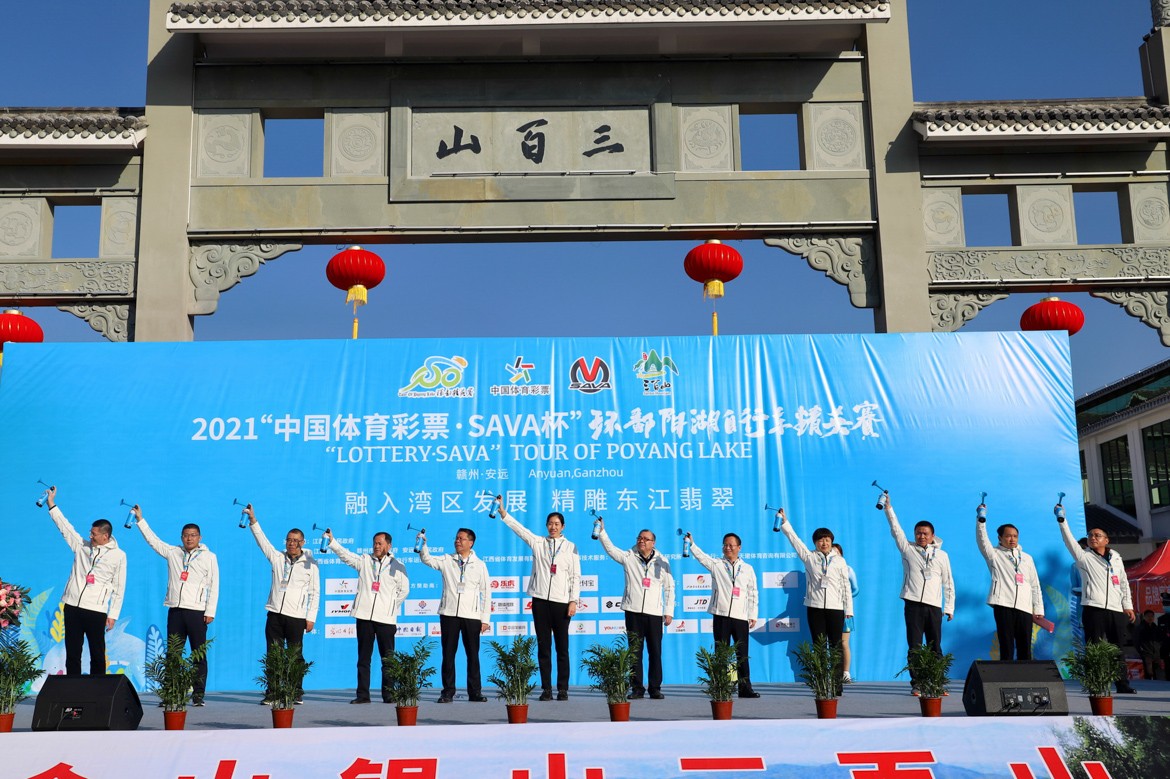 江西省體育局黨組成員、副局長金紫薇,贛州市政協(xié)副主席藍(lán)赟,贛州師范高等專科學(xué)校黨委書記廖偉,安遠(yuǎn)縣委書記楊有谷,贛州市政府副秘書長溫海,贛州市體育局局長李詒蕓,江西省體育局宣教法規(guī)處處長鐘進(jìn)華,江西省體育局人事處處長陳晶,江西省體育發(fā)展有限公司董事長沈紅斌,安遠(yuǎn)縣政府副縣長何志勇,深圳市景曄交通器材有限公司總經(jīng)理張勇等出席比賽開幕式并為比賽發(fā)車鳴笛,安遠(yuǎn)縣委常委、組織部長羅水養(yǎng)主持發(fā)車儀式。