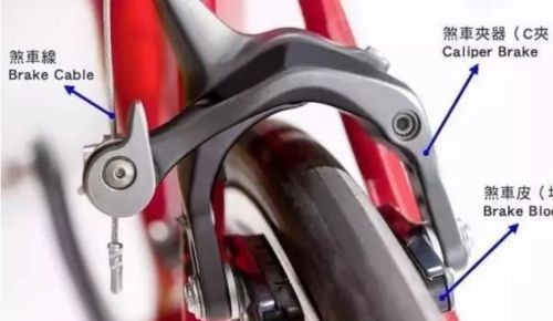 剎車系統,控制前后輪,使自行車減速并平安中止。