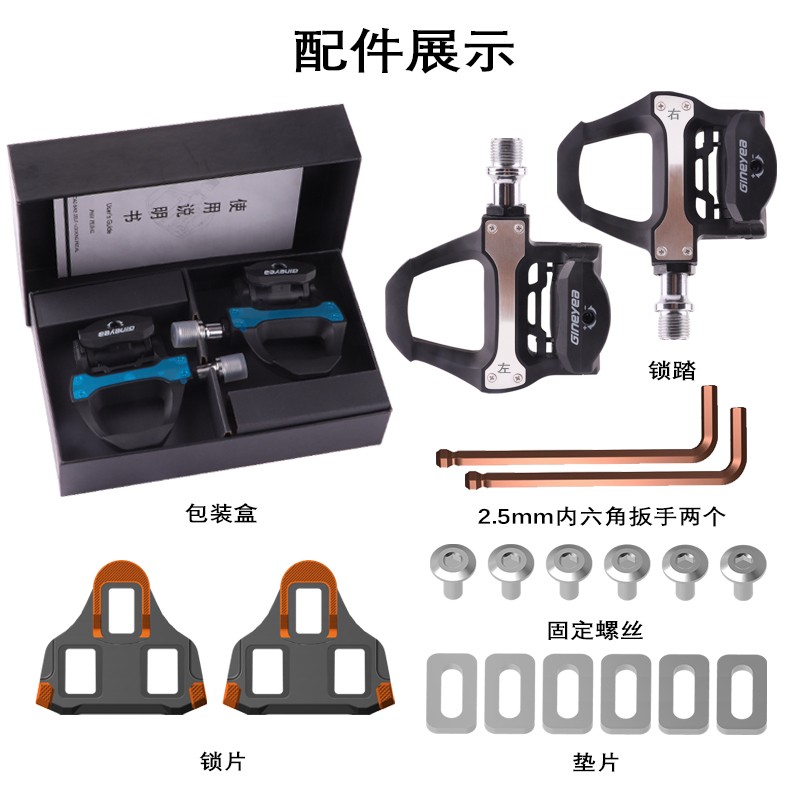 #公路車專業自鎖鎖踏,適用SPD-SL系統,自帶鎖片體驗不一樣的騎行速度、穩定、省力,踏板流線型一體化設計,高強度質量輕的尼龍材料加持,一對鎖踏僅重約280g,松緊度可調節的張力設置,靈活度更高,統一螺紋口徑14mm,多色可選