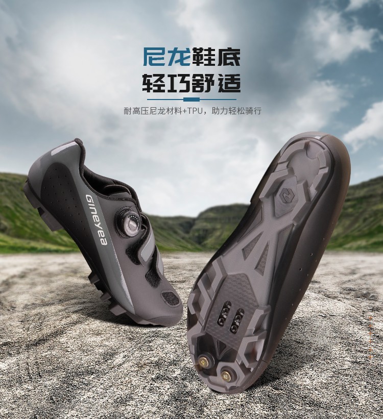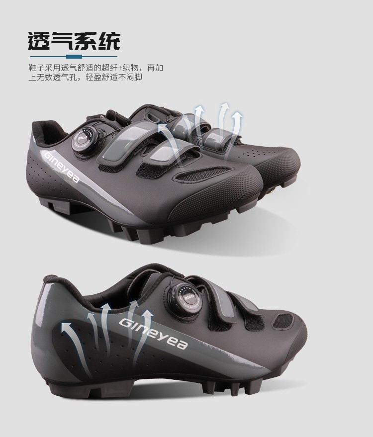 Gineyea新款透氣炭纖維山地車鎖鞋無(wú)鎖騎行鞋山地自行車男女鎖鞋